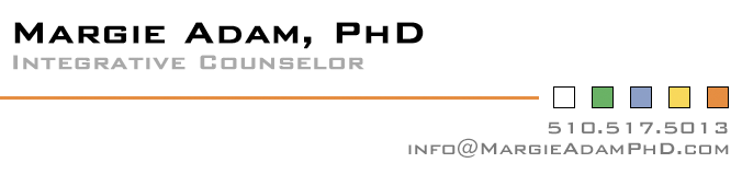 I opened a practice as an integrative counselor in the San Francisco-Bay Area in 2010, with an office in Oakland. My special affinities are with individuals recovering from addictions and co-dependency, artists with creativity issues, and women in transition.